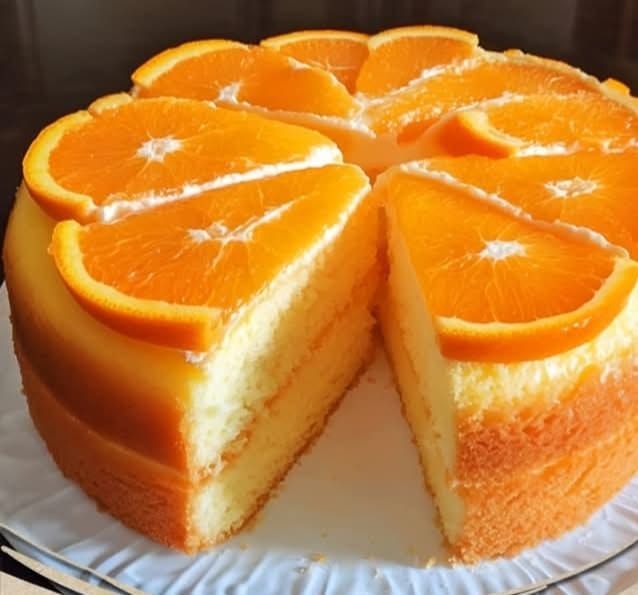 Slice and enjoy your moist, citrusy orange cake!