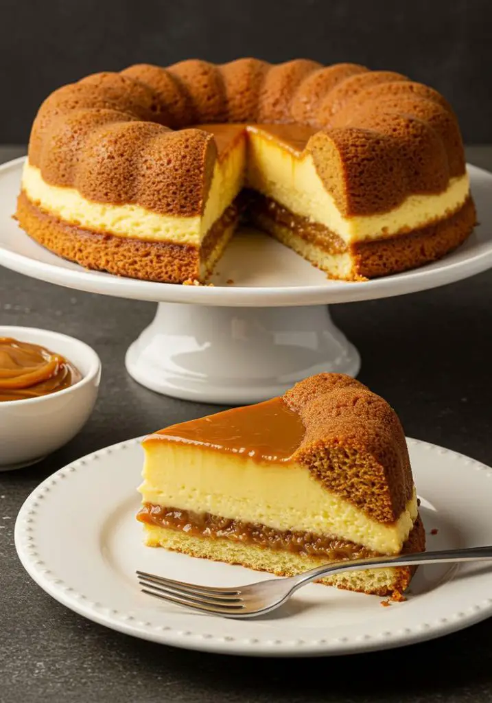 Add a layer of dulce de leche (caramel spread) between the flan and cake for extra richness — like the version in your photo!
