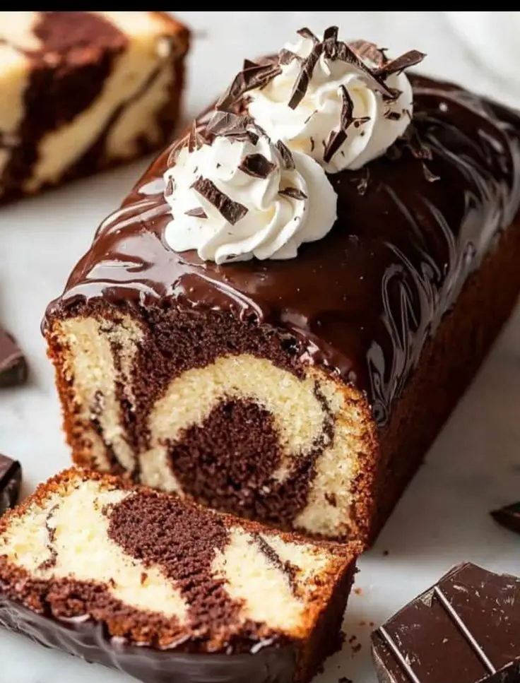 3. Pour spoonfuls of vanilla and chocolate batter alternately into the loaf pan.