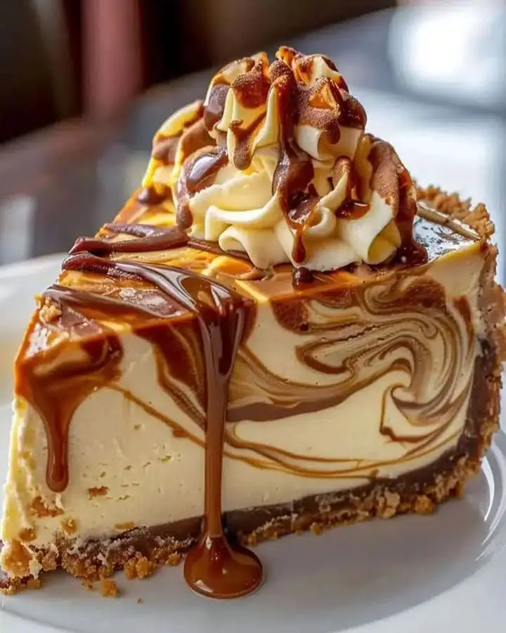 Swirl more caramel sauce on top using a knife or skewer to create a marble effect.