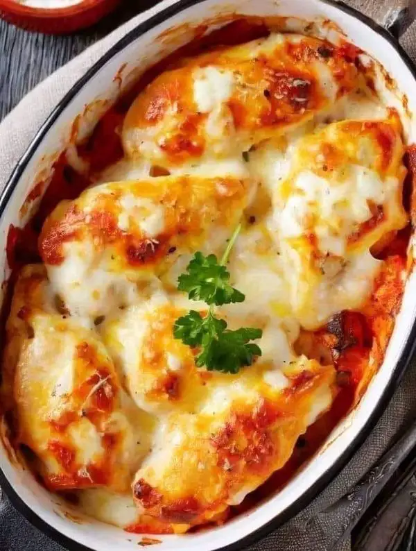 Bake for 20–25 minutes, or until the chicken is fully cooked and the cheese is melted and golden.