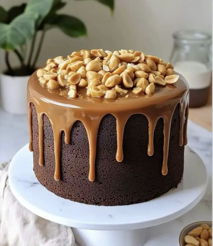 3. Pour caramel sauce over the top, letting it drip down the sides.