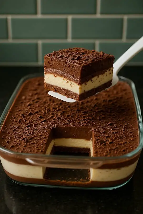 5. Pour half of the chocolate mixture into the dish and let it set 10 minutes.