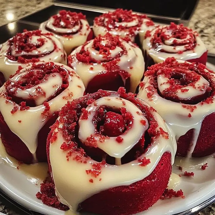 Red Velvet Cinnamon Rolls with Cream Cheese Glaze
