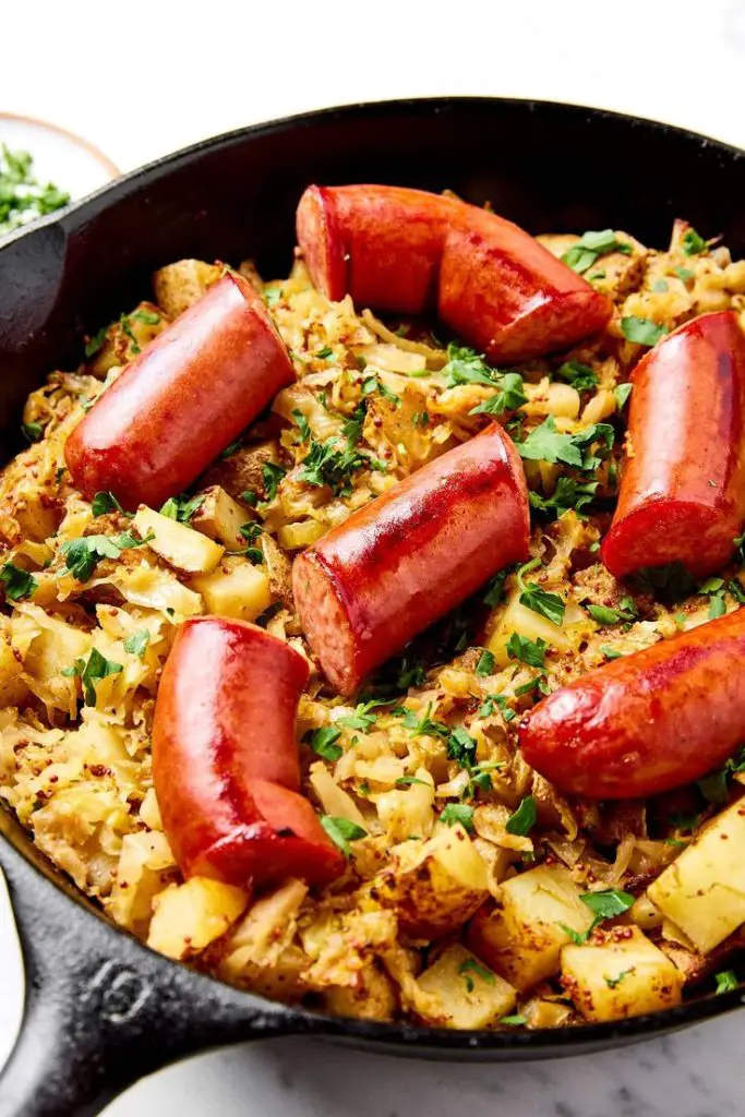 skillet kielbasa and sauerkraut