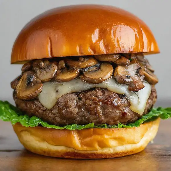 In the last minute of cooking, place a slice of Swiss cheese on each patty and cover to melt.